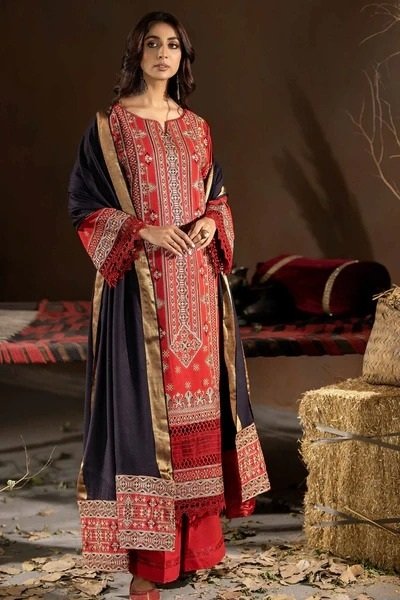 Embroidered wool shawl